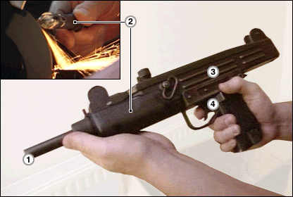 To make it no longer lethal, the gun's barrel is sawn down the middle and a metal rod welded inside to make it incapable of discharging a bullet.